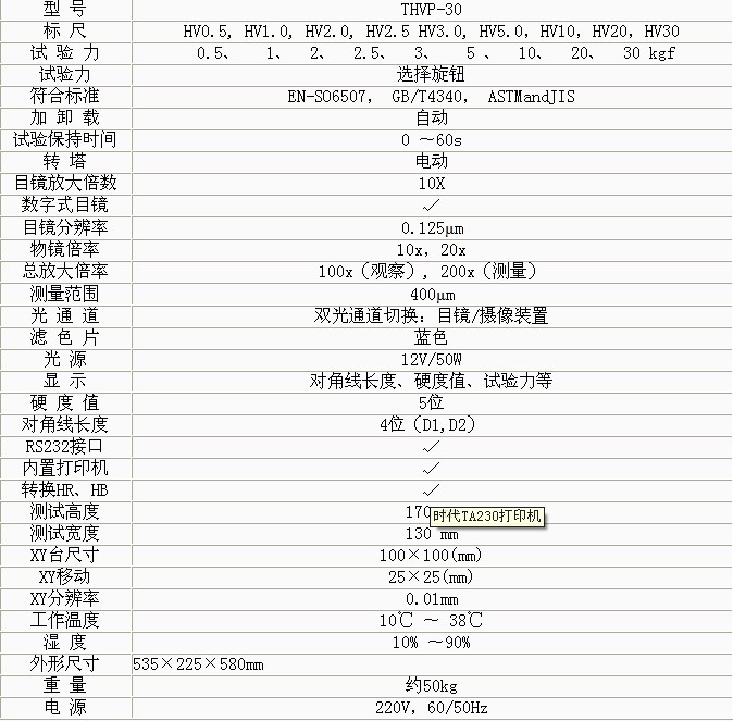 產(chǎn)品概述: 大屏數(shù)顯自動(dòng)磚塔維氏系列硬度計(jì)是光機(jī)電一體化的高新技術(shù)產(chǎn)品,維氏硬度計(jì)讀數(shù),顯示屏使用大的LCD屏幕,它造型新穎、美觀,維氏硬度計(jì)淄博代理,具有良好的直觀性、可操作性和可靠 性,二手維氏硬度計(jì),是測(cè)試維氏硬度的理想產(chǎn)品。該機(jī)的壓頭和物鏡之間的轉(zhuǎn)換采用自動(dòng)切換裝置該機(jī)可測(cè)定鋼、有色金屬、IC薄片、薄塑料、金屬薄片、涂層、表面覆層、層壓 金屬、熱處理碳化層和淬火硬化層的深度與硬度梯度。 功能特點(diǎn): 1 、硬度計(jì)在機(jī)械上采用精密的結(jié)構(gòu)設(shè)計(jì),維氏硬度計(jì)hv 1000,在光學(xué)上采用高倍率物鏡和數(shù)顯式測(cè)微目鏡,維氏硬度計(jì)操作規(guī)程,測(cè)量光源采用冷光源等先進(jìn)技術(shù)。 2、采用閉環(huán)式加載控制系統(tǒng),使試驗(yàn)力精度提高,示值的重復(fù)性及穩(wěn)定性佳。該系統(tǒng)用在維氏硬度計(jì)上,維氏硬度計(jì) 美國,在國內(nèi)屬首創(chuàng)。 3、 操作由面板上的觸摸鍵輸入,維氏硬度計(jì)廠家,能預(yù)置試驗(yàn)力保荷時(shí)間、調(diào)節(jié)測(cè)量光源的強(qiáng)弱、選擇維氏或努氏測(cè)試模式、硬度轉(zhuǎn)換標(biāo)尺、文件號(hào)與儲(chǔ)存等。并能在屏幕 上顯示測(cè)量壓痕長(zhǎng)度、硬度值、測(cè)量次數(shù)和年、月、日及時(shí)間等,表面維氏硬度計(jì),試驗(yàn)結(jié)果和數(shù)據(jù)處理,維氏便攜式硬度計(jì),并通過打印機(jī)輸出,維氏硬度計(jì)密測(cè)多友,還能通過RS232接口與計(jì)算機(jī)連接。硬度計(jì)還可根 據(jù)用戶特殊需求配置CCD裝置、視屏裝置和攝像裝置。 技術(shù)參數(shù):